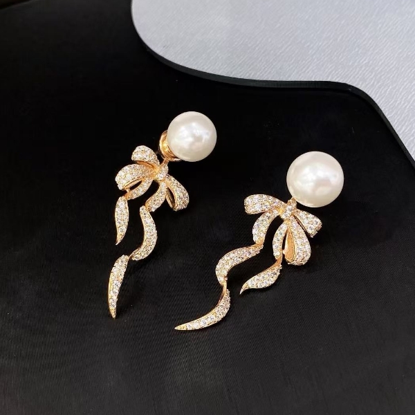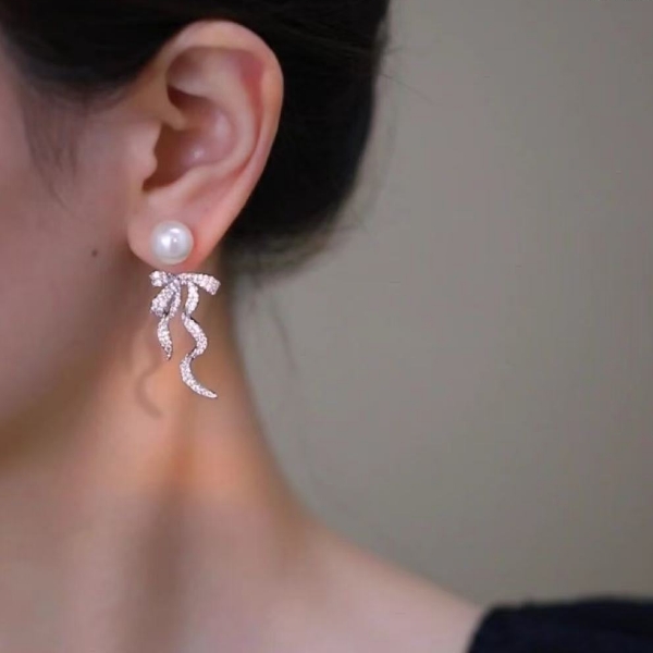 S925 Fine Silver Jewelry - Stylish and Exquisite Bowknot Pearl Earrings